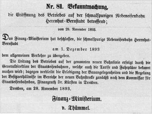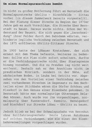 Weiterführung der Schmalspurbahn von Bernstadt über